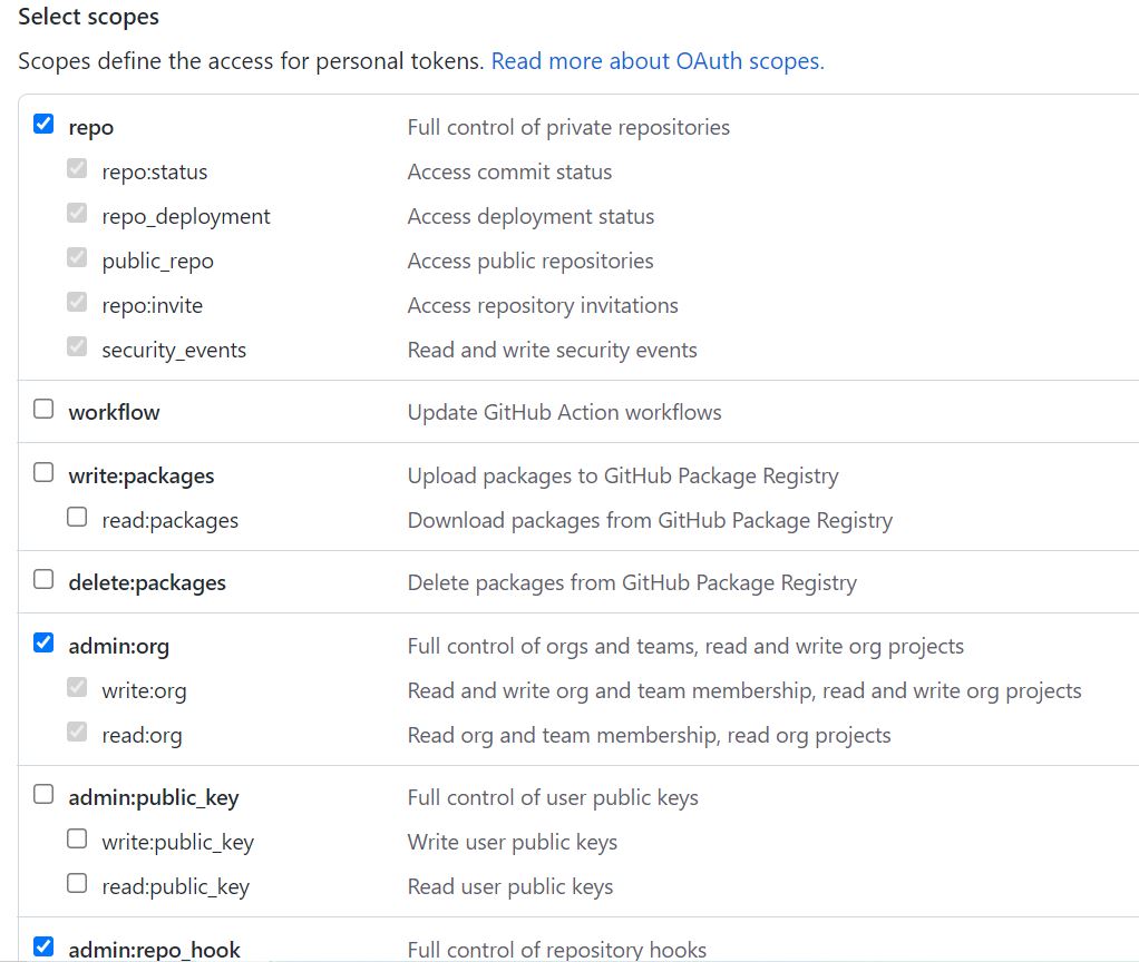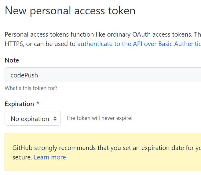-> 아래와 같이 토큰명 만료기간 옵션체크후 Generate token 버튼 클릭!!