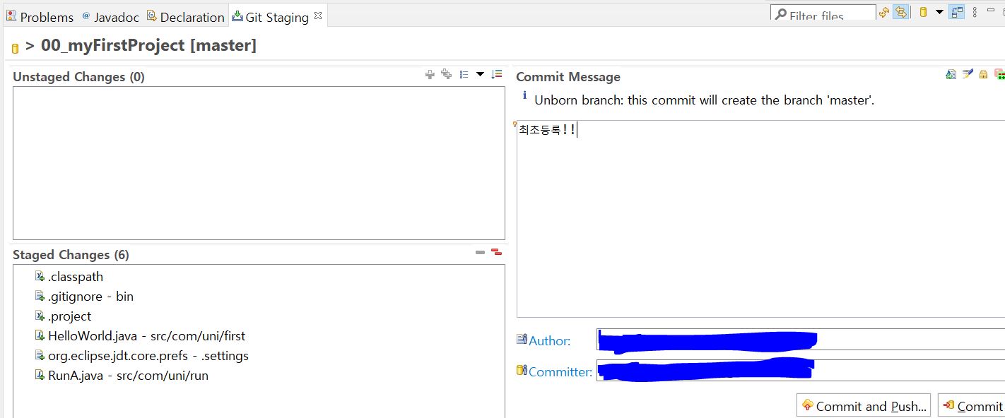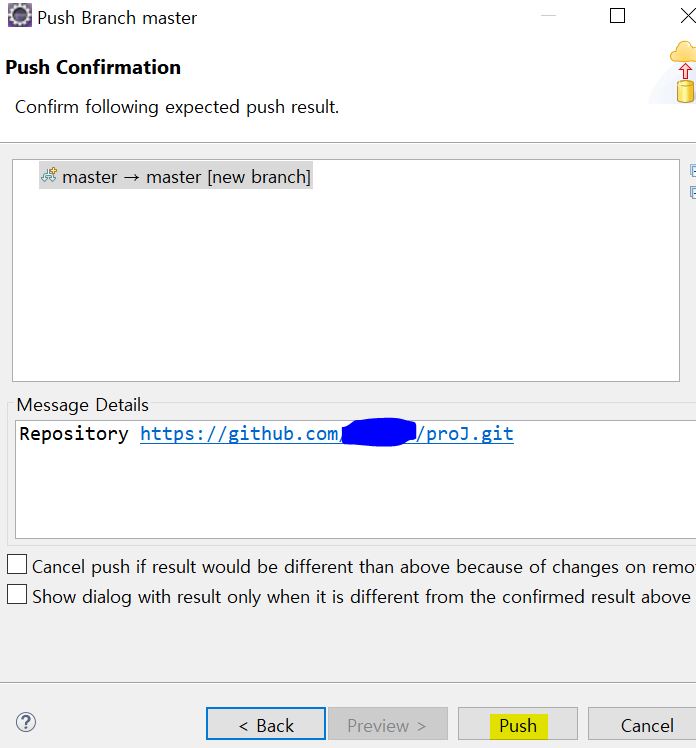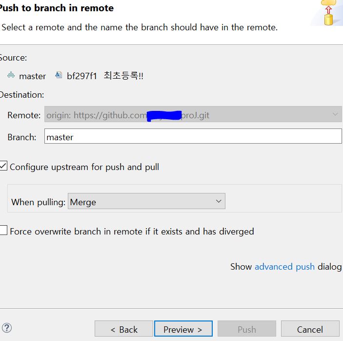 Commit and push 버튼 클릭후 아래와 같이 진행 !!