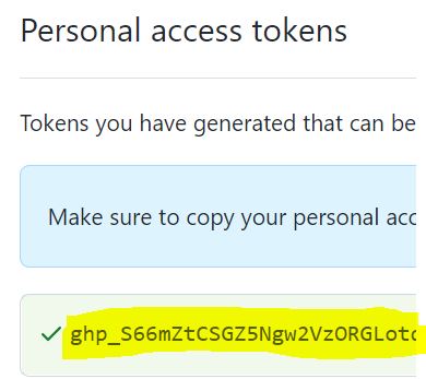 생성된 토큰을 복사해서 따로 잘 저장해두자 !!