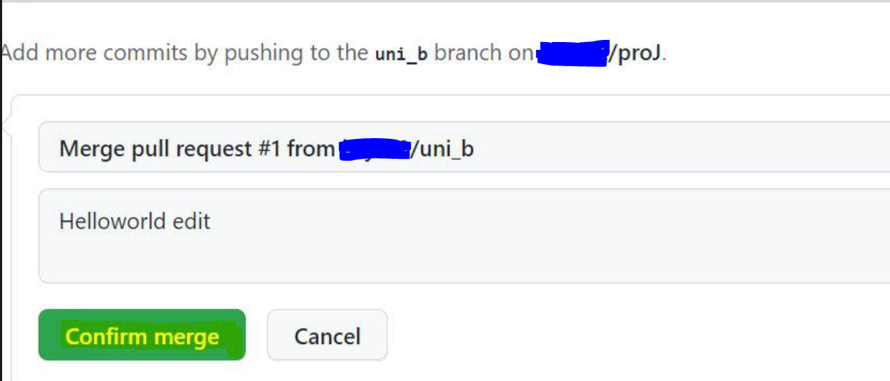 18. merge 하기 - 팀장의 저장소이지만 팀원이 요청을 하고 나면 manage access 에서 권한을 팀원에게도 주었기 때문에 직접 merge 도 할수있다. 팀장이 merge 할지, 팀원을 믿고 직접 merge 할지 규칙을 정해서 하면된다.