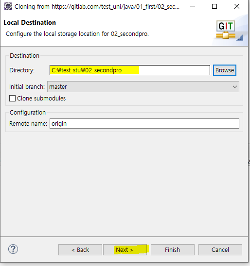 secondpro 도 마찬가지로 동일하게 clone 주소 복사하고 directory 경로 잘 설정해서 내려 받기 !~