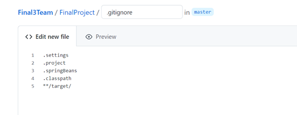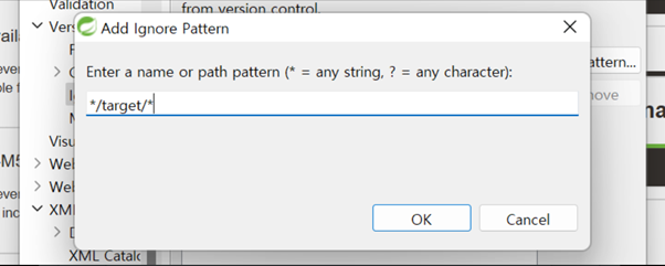 version Control(Team)에서 ignored Resources로 들어가서 **/target/**을 추가해준다.