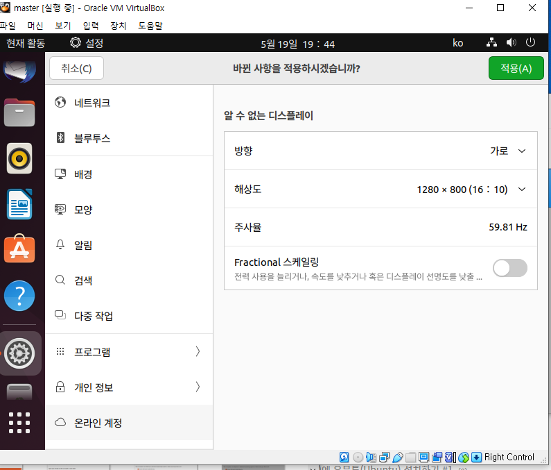 VirtualBox 해상도 조정 너무높게는하지말자!