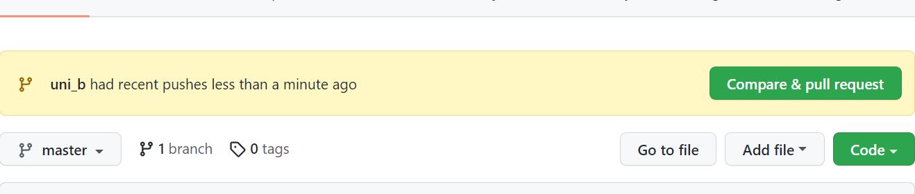 15. git hub 저장소에 가서 확인하면 아래 와 같이 pullrequest 를 날릴수 있게 버튼이 생겼다.