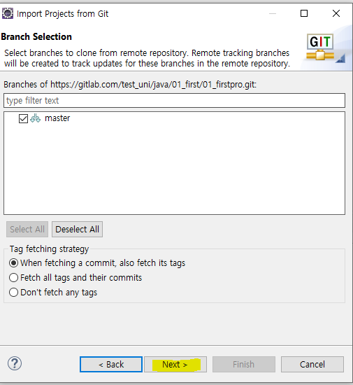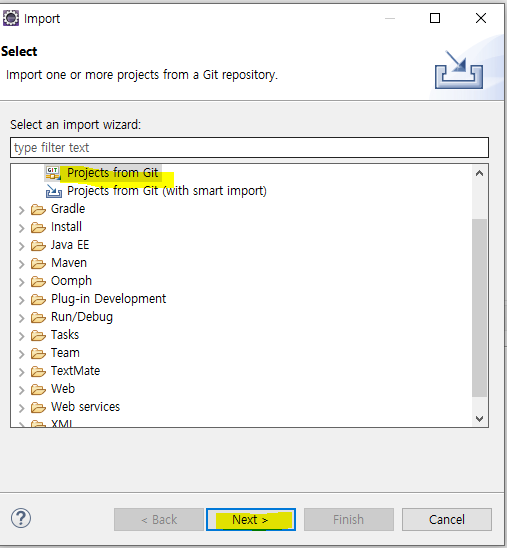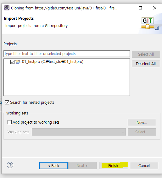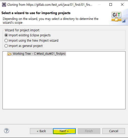 5 내가 만든 현재 이클립스 워크스페이스에 바로 받을 수있도록 수정. 아니면 c에 사용자 계정에 git 폴더에 기본저장 !