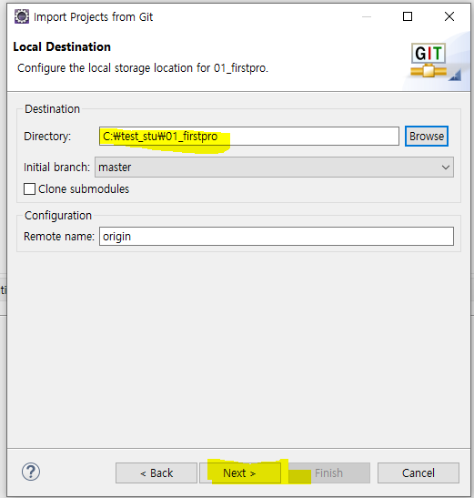 secondpro 도 마찬가지로 동일하게 clone 주소 복사하고 directory 경로 잘 설정해서 내려 받기 !~