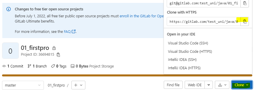 GitLab 프로젝트 내려받기 ( 팀원 )