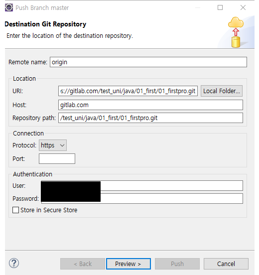 ssh 말고 비밀번호와 아이디를 넣는데 비밀번호 설정이안되어있다면 Edit profile 에서 비밀번호 생성해서 진행!!