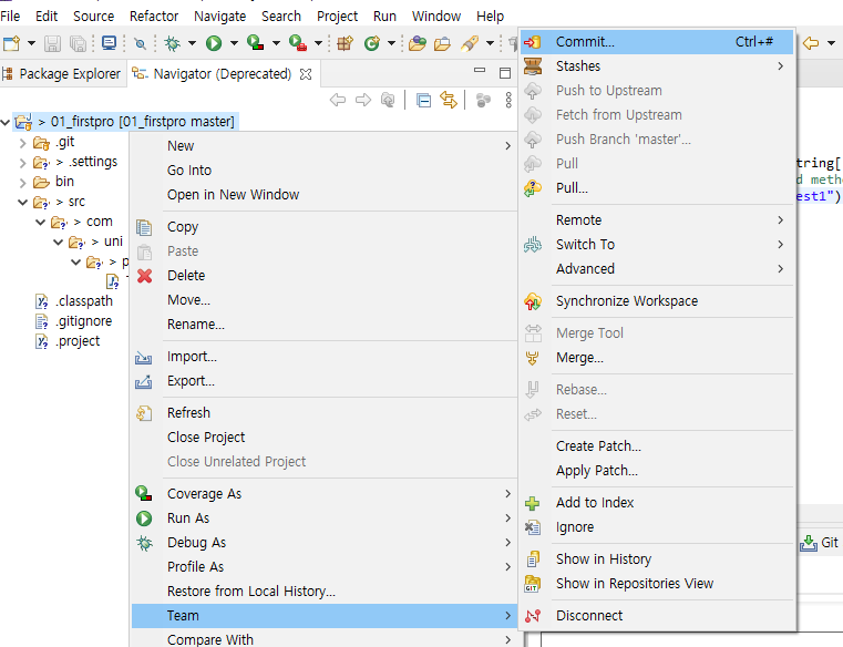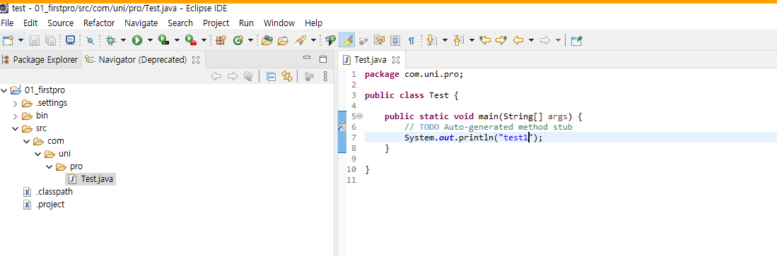 11. testuni > java > 01_first 아래에 프로젝트를 추가해보자 (팀프로젝트하는경우는 이렇게 sub그룹을 추가할 필요는 없음. )