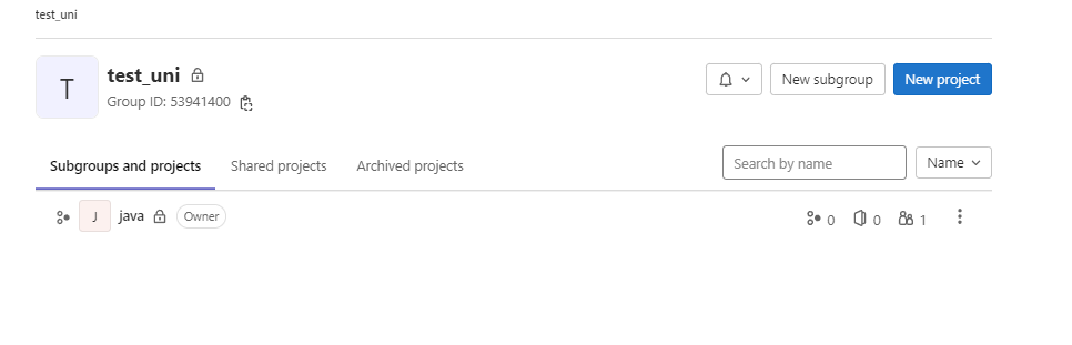 6. 이렇게 생성되고 상위 그룹에 들어가서 보면 java 가 생성되어있다.