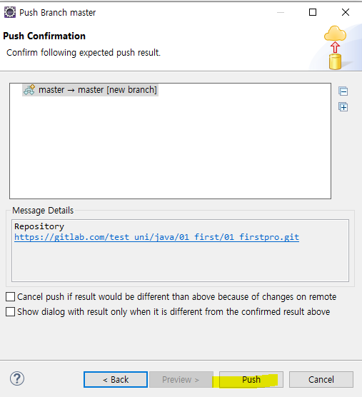 - 새로운 브랜치를 만들고 push가 가능하지만 protected 브랜치에는 push가 불가능