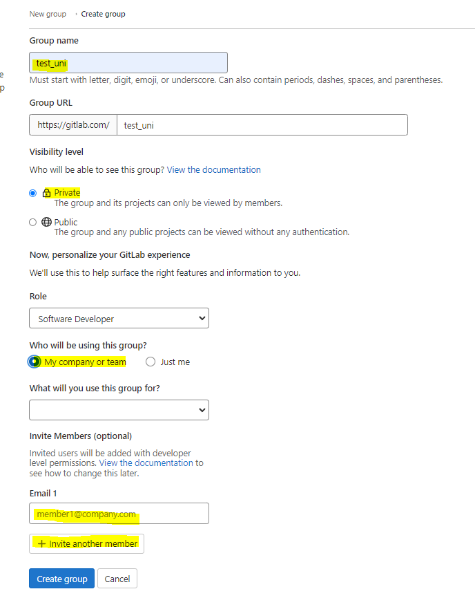 2 . group 에 추가 할 member 를 젤 아래에 넣어서 생성!