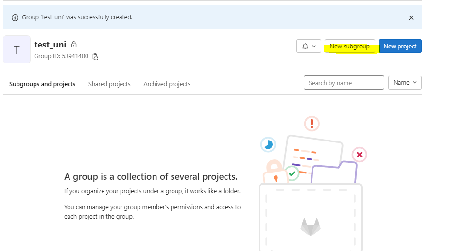 GitLab group 설정 프로젝트생성( Groups create remove)