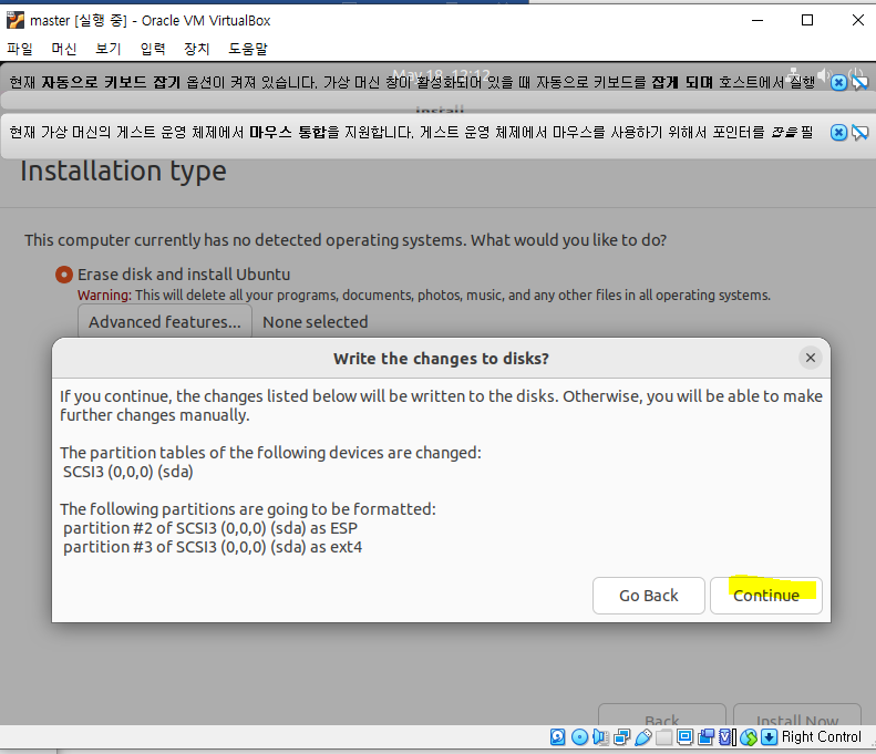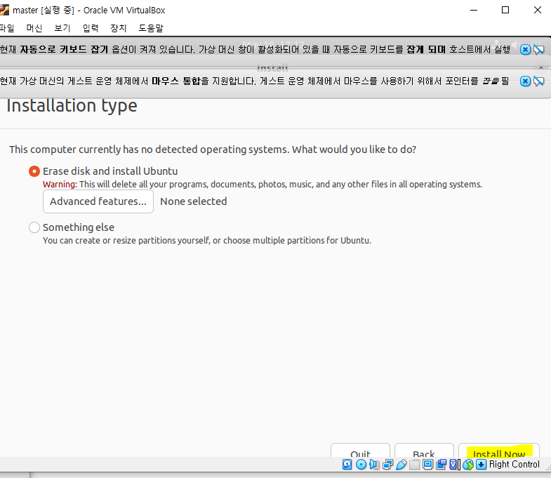 - Erase disk and install Ubuntu (디스크를 지우고 Ubuntu 설치)